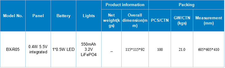 ●太陽能電池板:0.4W 5.5V集成